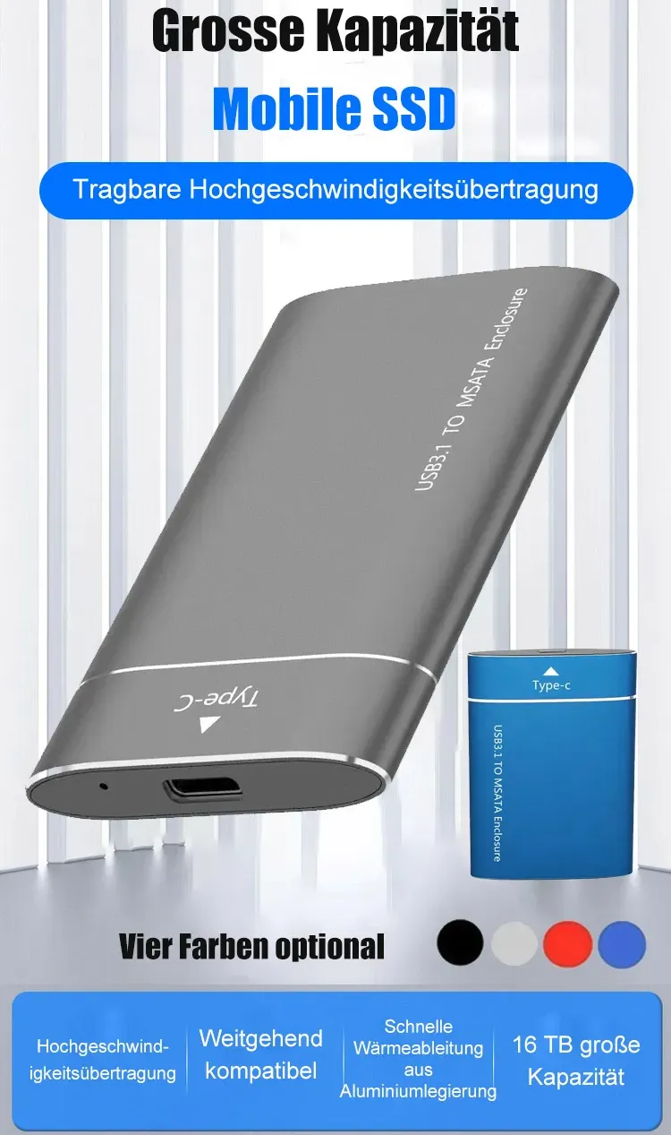 16 TB Tragbare SSD, Type-C, 950 MB/s, kompatibel mit allen Systemen